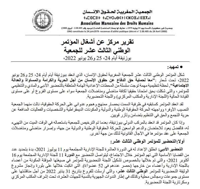 شكل المؤتمر الوطني الثالث عشر للجمعية المغربية لحقوق اإلنسان، الذي انعقد ببوزنيقة أيام أيام ،42 42 و42 يونيو