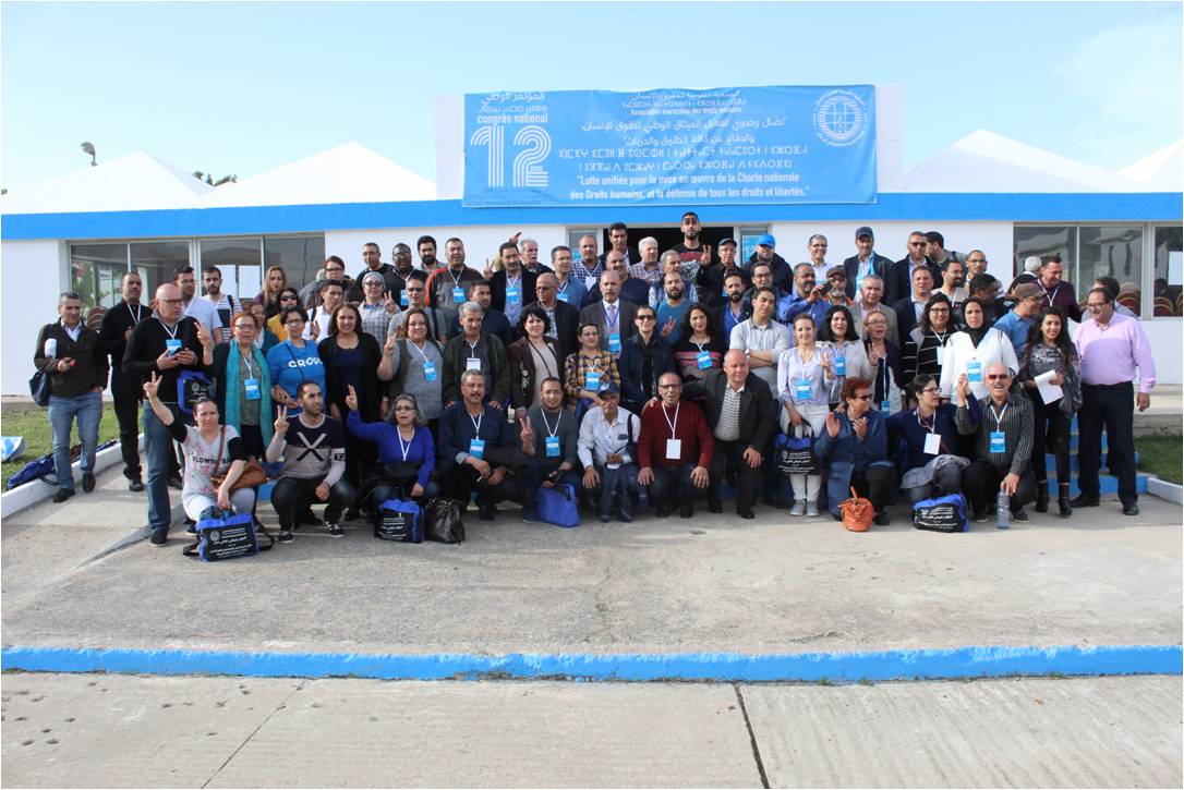 إن المؤتمر الوطني الثاني عشر للجمعية المغربية لحقوق الإنسان، المنعقد أيام 26، و27، و28 أبريل 2019، ببوزنيقة، تحت شعار: "نضال وحدوي لتفعيل الميثاق الوطني لحقوق الإنسان، والدفاع عن كافة الحقوق والحريات"؛ هذا الشعار الذي يعكس وعي الجمعية بضرورة وحدة العمل من أجل الدفاع عن حقوق الإنسان وإقرار الديمقراطية ببلادنا مع ربط هذا العمل الوحدوي بهدف ملموس هو تفعيل الميثاق الوطني لحقوق الإنسان؛ وبعد مصادقته على التقريرين الأدبي والمالي، وعلى المقررات والتوصيات، على ضوء مستجدات الأوضاع الدولية والإقليمية والوطنية وانعكاساتها على أوضاع حقوق الإنسان؛ وبعد تداوله حول سمات المرحلة التي ينعقد فيها المؤتمر، والتي يتجلى فيها استمرار الدولة في استبدادها، وإمعانها في انتهاك الحقوق والحريات، وإجهازها على كافة المكتسبات المحققة بفضل نضالات الشعب المغربي، وتسخيرها القضاء للانتقام من المعارضين ونشطاء الحراكات الاحتجاجية، ومواصلتها ممارسة الحصار الممنهج والتضييق على الحركة الحقوقية والديمقراطية؛ وهو الأمر الذي تناولته الوثيقة التحضيرية للمؤتمر، وتقارير الندوات الداخلية والعمومية، والندوة الافتتاحية للمؤتمر؛ وبعد انكبابه على تدقيق متطلبات المرحلة المقبلة، يسجل ما يلي: