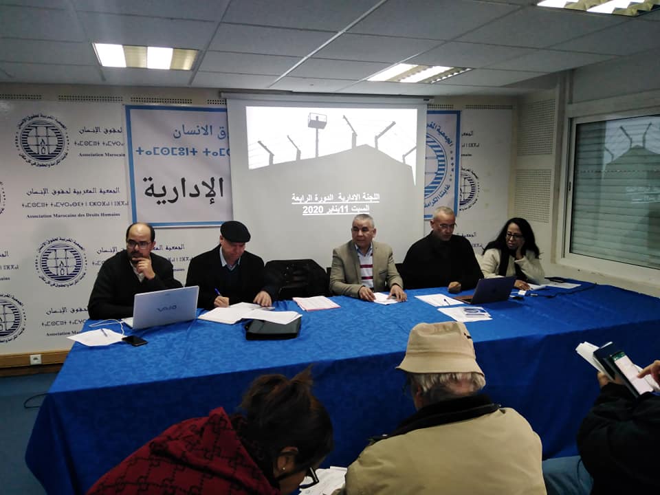عقدت اللجنة الإدارية للجمعية المغربية لحقوق الإنسان اجتماعها الدوري الرابع بالمقر المركزي للجمعية يوم 11 يناير 2020، تحت شعار "جميعا من أجل الحرية لمعتقلي الرأي والمعتقلين السياسيين"، مؤكدة بذلك انخراط الجمعية القوي في الحملة الوطنية والدولية من أجل إطلاق سراح كافة معتقلي الرأي والمعتقلين السياسيين بالمغرب، ومجددة العزم لمواصلة النضال من أجل الدفاع عن حرية التعبير وكافة الحقوق والحريات، وفضح الانتهاكات التي تتعرض لها، خاصة ما تعرفه حرية التعبير في الفضاء الرقمي من هجوم وتجريم، في محاولة لإغلاق ما تبقى من فضاءات النقاش والتعبير، وزرع الخوف وسط مستعمليها لإخراسهم.
