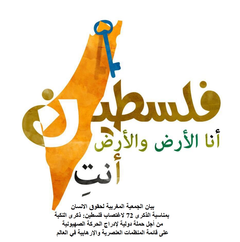 إن الجمعية المغربية لحقوق الانسان المؤمنة بحق الشعوب في تقرير مصيرها المنصوص عليه في كافة المواثيق الدولية لحقوق الإنسان والشعوب، اذ تحيي صمود الشعب الفلسطيني ومقاومته الباسلة، فأنها: