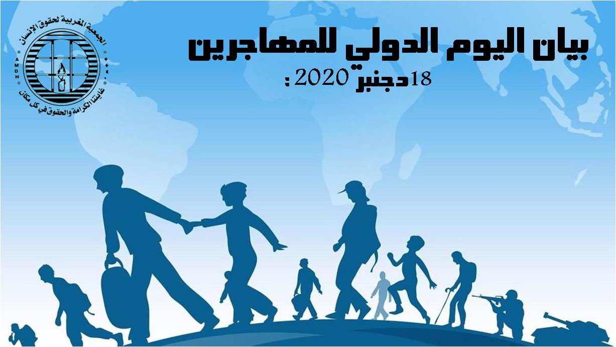 تخلد الجمعية المغربية لحقوق الإنسان، إلى جانب كل القوى المدافعة عن الحقوق الإنسانية للمهاجرين/ات عبر بقاع العالم، اليوم الدولي للمهاجرين الذي يصادف 18 من دجنبر من كل سنة. ويأتي احياء هذا اليوم في ظل استمرار تردي أوضاع الملايين من البشر خاصة مع أزمة جائحة كوفيد 19 وما رافقها من تقييدات للحرية في جميع أنحاء العالم و تدهور للأحوال الاقتصادية والاجتماعية وما عرت عنه الجائحة من خصاص مهول في الخدمات الصحية بشكل خاص وفي المرافق العمومية بشكل عام.