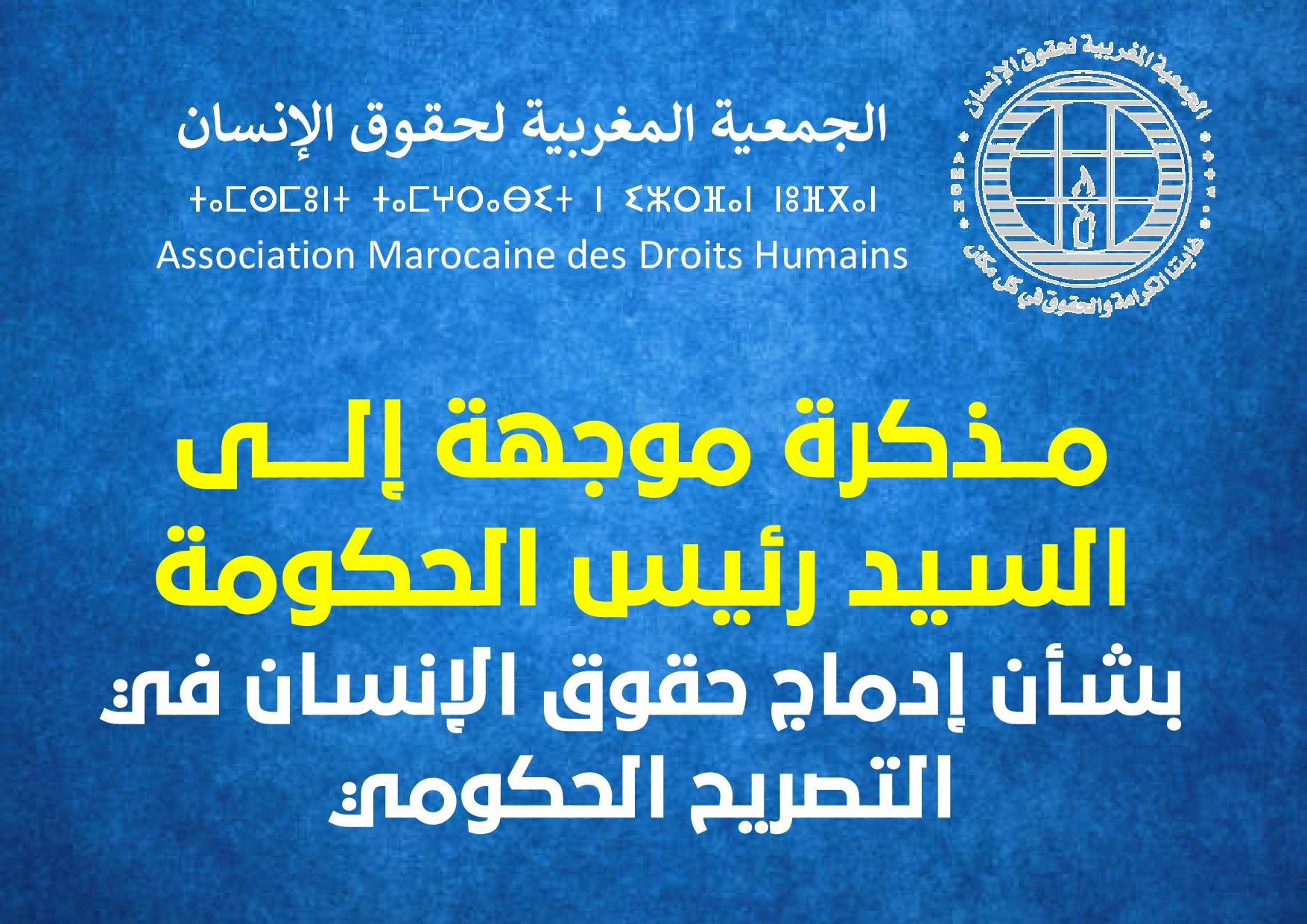 وانطلاقا مما راكمته من تجربة في بلورة وتقديم المذكرات، والملاحظات، والمواقف والتقارير الموازية في مجال حقوق الإنسان في المغرب، أعدت الجمعية المغربية لحقوق الإنسان، هذه المذكرة الترافعية التي تتضمن المطالب الحقوقية الأساسية وتدعو السيد رئيس الحكومة إلى الأخذ بعين الاعتبار الأهداف والتوصيات الواردة فيها، عند إعداد البرنامج الحكومي، والالتزام بها عند تقديم التصريح الحكومي، واعتماد المقاربة الحقوقية في البرامج والسياسات العمومية؛