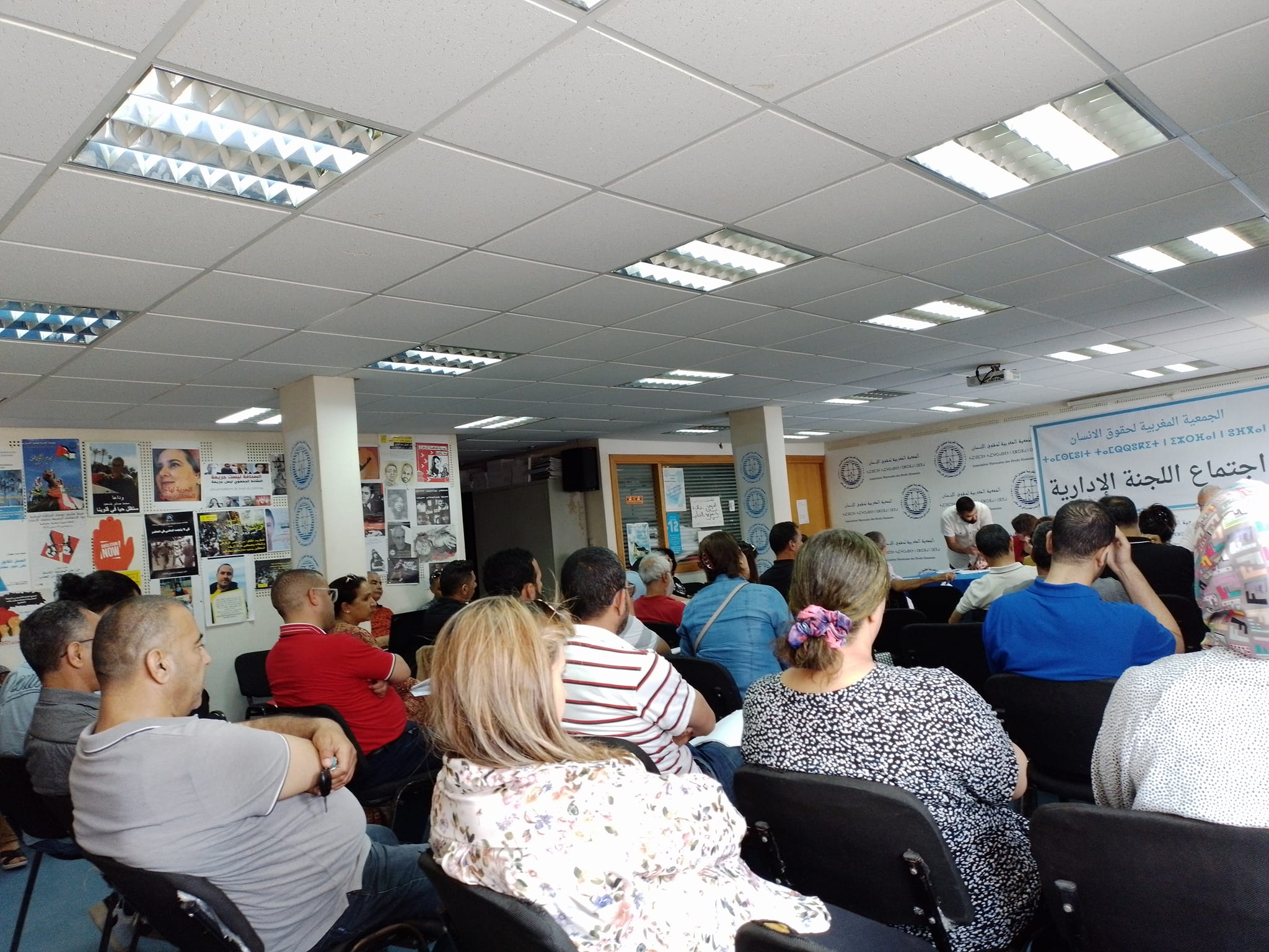 عقدت اللجنة الإدارية للجمعية المغربية لحقوق الإنسان اجتماعها العادي الحضوري، في دورتها الثالثة عشر بعد المؤتمر الوطني الثاني عشر، يوم السبت 28 ماي 2022، تحت شعار "جميعا من أجل إنجاح المؤتمر الوطني الثالث عشر للجمعية "، تاكيدا منها على مواصلة التعبئة وسط مناضلات ومناضلي الجمعية في الفروع وعلى مستوى اللجنة الإدارية من أجل فرض حق تنظيم المؤتمر الوطني القادم في الوقت والمكان المحددين له، وإنجاح أشغاله وأشغال جميع المحطات السابقة له، وخلق دينامية تنظيمية ونضالية وتعبوية، باعتبار أن المؤتمر هو لحظة تنظيمية ونضالية أساسية لتقييم الأداء والمحيط ورسم المستقبل النضالي. وقد وقف الاجتماع عند المهام التنظيمية والأدبية التي تم تحقيقها بدءا من الوثيقة التحضيرية والجموع العامة لانتخاب المؤتمرين والمؤتمرات، ثم مشروعي التقرير الأدبي والتقرير المالي. كما أحذ عضوات وأعضاء اللجنة الإدارية علما بالخطوات التي قام بها المكتب المركزي من أجل توفير الفضاء الذي سيستقبل أشغال المؤتمر. حيث تم الاتصال بإدارة المركب الدولي للشباب ببوزنيقة وحجز القاعات والتجهيزات والفضاءات والمطعم ... كما قام أعضاء من المكتب المركزي بعدة محاولات لعقد لقاء مع السلطات المحلية ببوزنيقة دون التمكن من ذلك. مما اضطر المكتب المركزي إلى مراسلتها بواسطة مفوض قضائي ثم عبر البريد المضمون، نظرا للتلكؤ الذي أبانت عنه في تحديد موعد للقاء بها. وفي لقاء سريع ببهو باشوية بوزنيقة، أخبر الباشا مسؤولي الجمعية أن مصالح الباشوية توصلت بمراسلات الجمعية وأحالتها على عمالة بنسليمان.