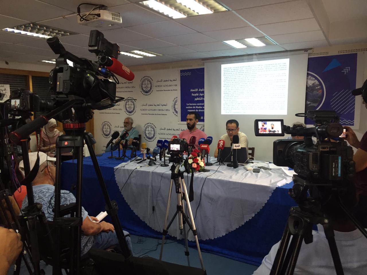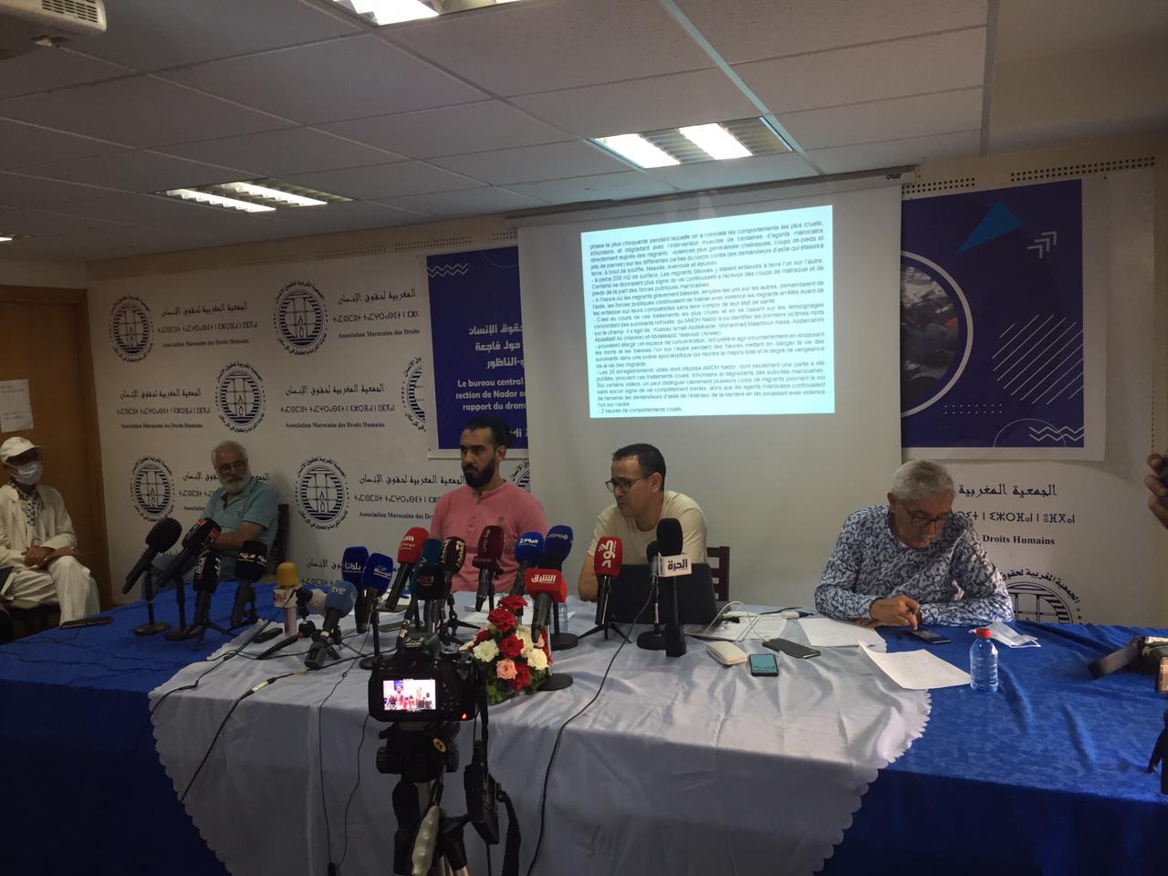 يسعد المكتب المركزي للجمعية المغربية لحقوق الإنسان ومكتب فرع الجمعية بالناظور أن يرحبوا بكن/م وأن يشكروكن/م على حضوركن/م لهذه الندوة الصحفية، التي تنظمها الجمعية لتسليط الأضواء عبرها على الأحداث المأساوية التي عرفتها منطقة الناظور على الحدود مع مليلية المحتلة، والوقوف على أهم الخروقات والانتهاكات التي وصلت حد المساس بالحق المقدس في الحياة وسقوط العديد من الجرحى بعضهم إصاباتهم خطيرة والوقوف كذلك على أهم الممارسات التي طبعت سلوك السلطات العمومية في تعاملها مع طالبي اللجوء والمهاجرين قبل وأثناء وبعد الأحداث الأليمة التي شهدها المعبر الحدودي باريو تشينو كما تم توثيقه من طرف عضوات وأعضاء الجمعية بفرع الناظور.